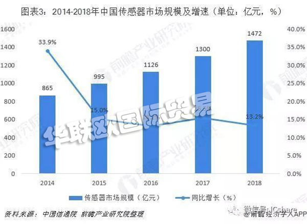 麥肯錫報告指出,到2025年,物聯網帶來的經濟效益將在2.7萬億到6.2萬億美元之間,其中傳感器作為物聯網技術最重要的數據采集入口,將迎來廣闊的發展空間。據中國信通院數據顯示,近年來中國傳感器市場規模保持較快增長,2018年達到1472億元,同比增長13.2%,近5年均保持兩位數的增長率。