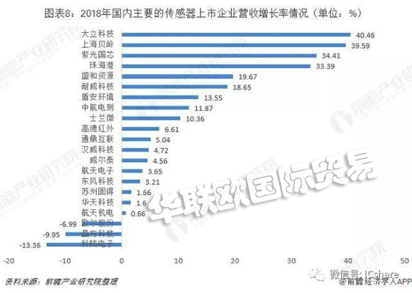 我國的傳感器市場增長迅速,年均增長速度超過10%,據統計,2018年國內的傳感器市場規模達到1472億元。2018年國內傳感器上市企業整體的營收增長明顯,八成以上的企業營收都出現增加,僅有三家企業(歌爾股份(002241)、晶方科技(603005)、科陸電子(002121))出現負增長。其中歌兒股份營收下滑的原因是智能手機增速放緩和VR產品銷售未達預期,導致傳感器業績不理想;晶方科技的傳統傳感器產品面臨的激烈市場競爭導致價格戰,同時它們加大了應用在汽車電子上MEMS智能傳感器的投入放緩了營收增長率。