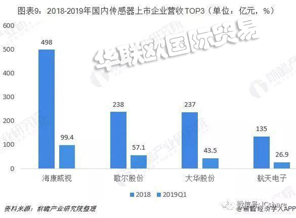從主要的上市企業來看,年過百億營收的傳感器企業僅有2家,這與國內傳感器企業發力晚、競爭大有關聯,即便是作為國內傳感器領頭羊歌爾股份,其營收也僅過200億元(??低?002415)和大華股份(002236)因主營業務并非傳感器,故而不做橫向對比)。