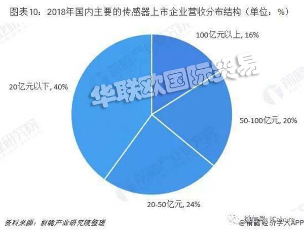 從營收分布結構來看,超過100億元的僅占16%,超過50億元以上為36%。此外,年營收20億以下的企業占比4成,這也反映了國內傳感器行業激烈的競爭形勢。