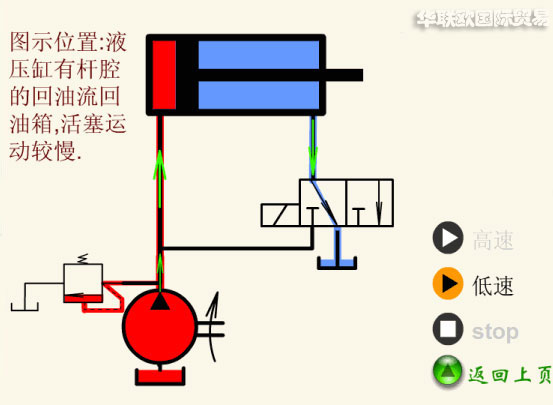 (1)無桿腔進(jìn)油,有桿腔回油。