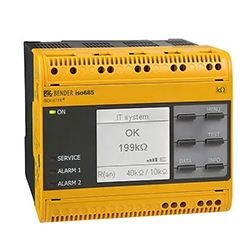 ④iso685是最新一代接地故障檢測(cè)器,適用于非接地交流和直流系統(tǒng)以及帶有變頻驅(qū)動(dòng)器和逆變器等電源轉(zhuǎn)換設(shè)備的系統(tǒng),可提供出色的接地故障保護(hù)。iso685采用最新的監(jiān)控技術(shù),可在幾乎所有類型的電力系統(tǒng)和控制系統(tǒng)上提供準(zhǔn)確的絕緣電阻讀數(shù),安裝、設(shè)置和操作功能簡(jiǎn)單。該設(shè)備符合或超出了NEC 250.21(B)、NEC 250.167(A)和CEC 10-400對(duì)非接地系統(tǒng)中接地檢測(cè)器的要求。