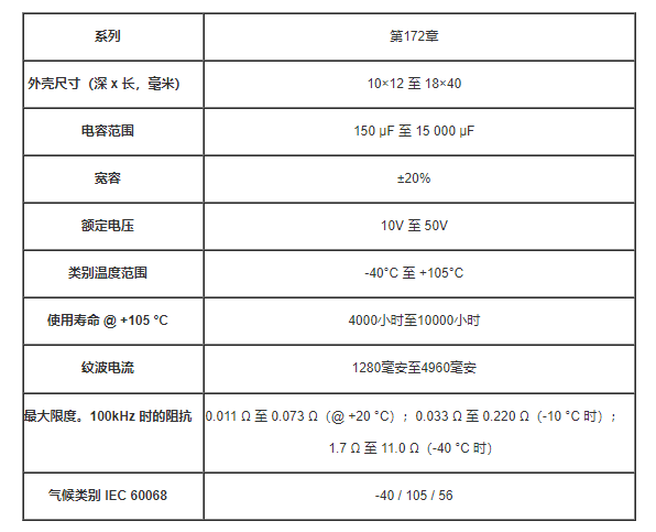 ①使用壽命極長:105°C下4000小時至10 000小時,高穩定性、高可靠性